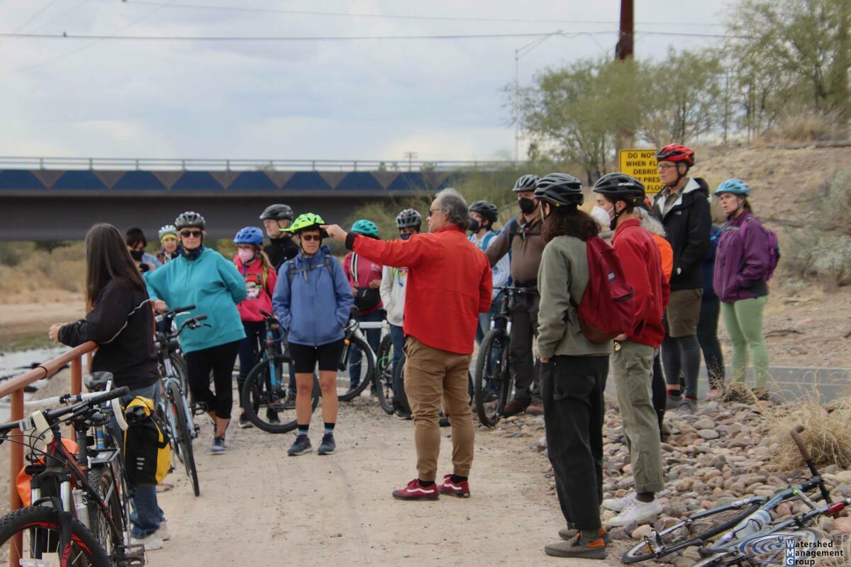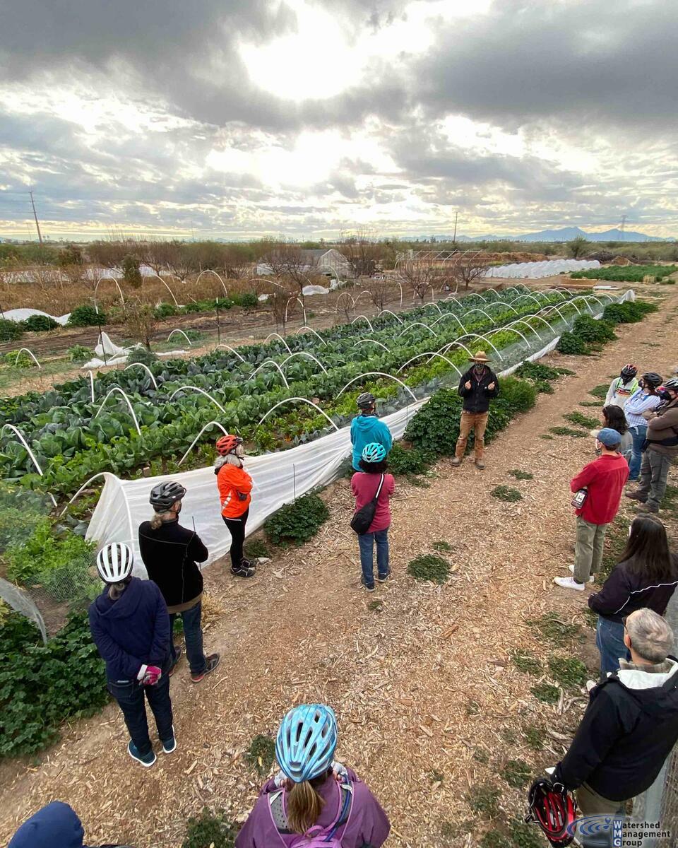 Nos fuimos de paseo bilingüe en bicicleta el sábado 23 de enero, visitando la granja comunitaria Las Milpitas, donde fueron muy amables de darnos un tour en inglés y en español; despues recorrimos parte del Río Santa Cruz por The Loop. Las Milpitas es un excelente ejemplo de sustentabilidad y resiliencia comunitaria en acción, y estamos muy agradecidos de que nos mostraran su granja con un tour en inglés y en español. También pudimos ver el Río Santa Cruz fluyendo, y hablamos sobre nuestra visión para restaurar como grupo la herencia de Tucson de sus arroyos y ríos.