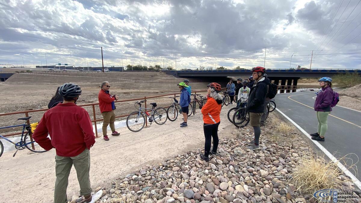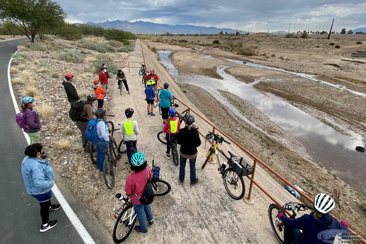 We had a fantastic bilingual bike ride with River Run Network members on Saturday, January 23rd! We started at Las Milpitas, where we were able to tour an amazing community farm, and then we took a bike ride along the Santa Cruz River on The Loop. Las Milpitas is a true example of community sustainability and resilience in action, and we are so grateful that they showed us around their farm with an English and Spanish tour. We also got to see flow in the Santa Cruz, and talked about our vision for restoring Tucson’s heritage of creeks and rivers as a group.