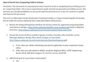 Composting Toilet Permit Process for Arizona Interested in getting a composting toilet for your home or are you building a new home and plan to install a composting toilet? This document will help step you through permitting requirements. Composting Toilet Ecosanitation