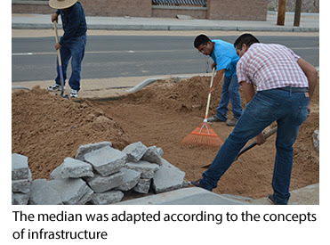 Training was provided the first day to municipal officials, professionals, high school and university students, and members of the community, regarding the incorporation of green infrastructure components to existing urban infrastructure through the implementation of a project as a case study. The second day, portions of a median, which is located within a project that was financed with a loan through the NADB, was planted with native species such as mesquite, palo verde, and various cacti. This project intends to demonstrate that rainwater harvesting in arid regions such as the selected area, ensures the continuity of naturally occurring ecological processes and directly improves the quality of life of area residents.